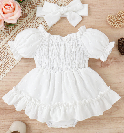 Puffed White Baby Girl Dress