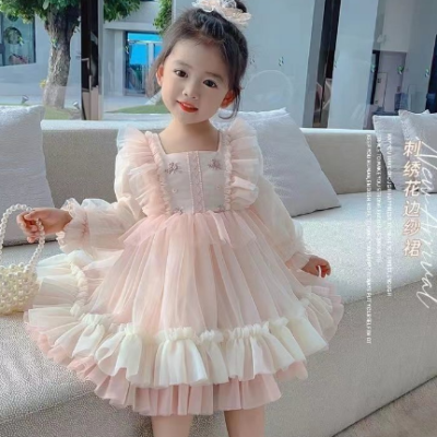 Pink Children’s Dress Girl Birthday Party High-grade Princess Dress Flower Design fairy Dreamy Western Style Tutu Skirt